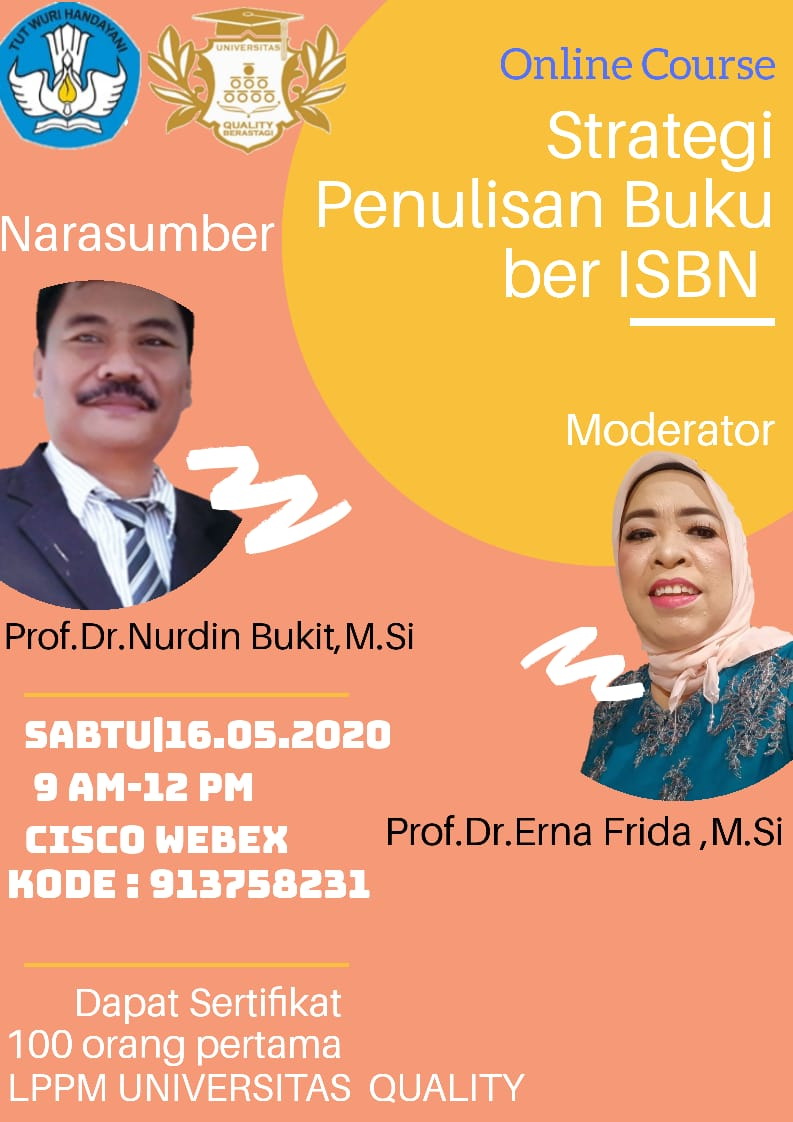 Seminar Online Strategi Penulisan Buku ber ISBN. Salah satu Tridharma Dosen adalah mengajar dan melakukan penelitian. Masih ada Dosen yang sudah melaksanakan penelitian dan belum menjadikan penelit...
